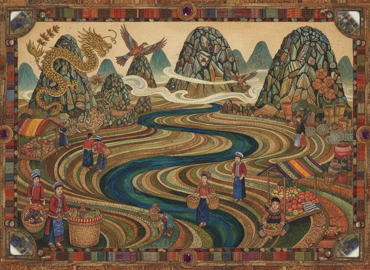 Small hamlet perched above famed rice terraces — immersive Zhuang and Yao culture, homestays and sunrise terrace views.