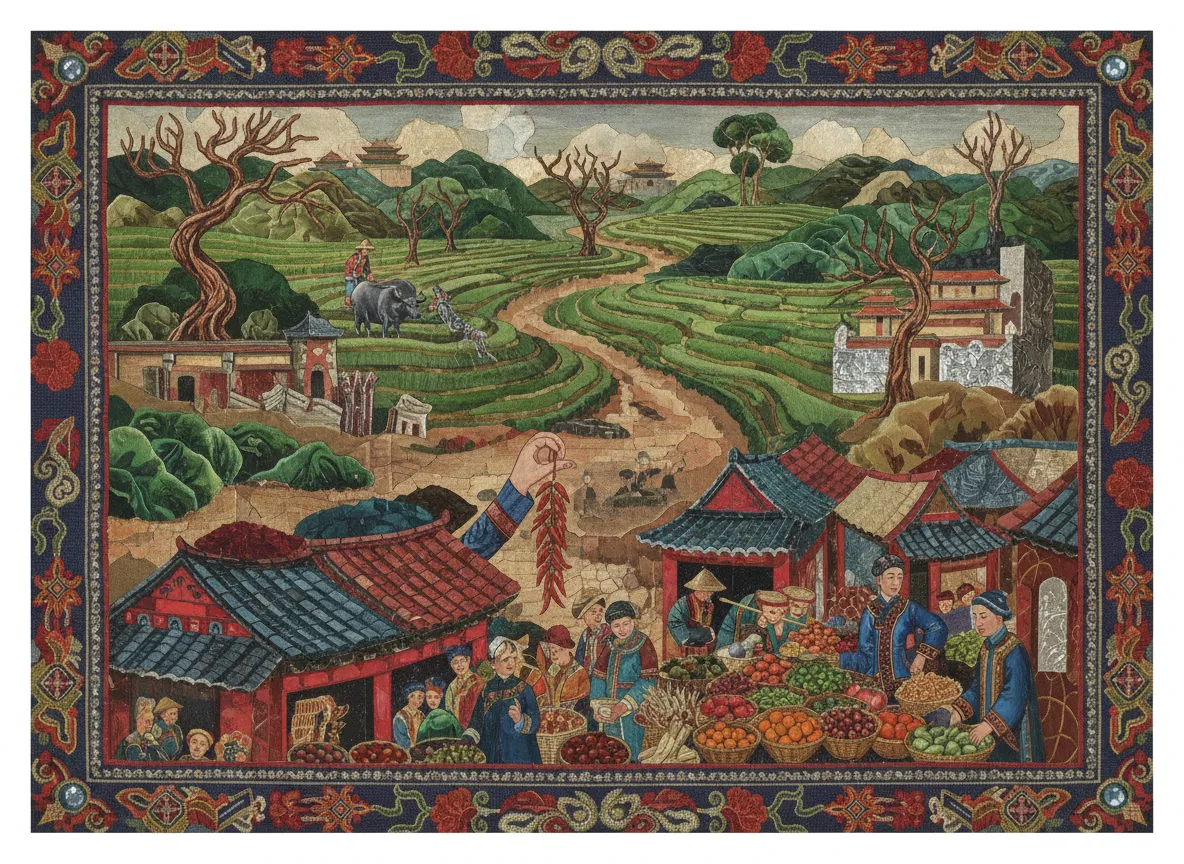 Дунсин — небольшой город в Сычуани, известный своими местными рынками и доступом к сельским пейзажам.