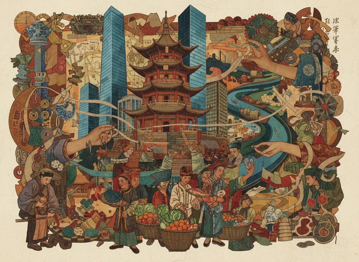 Район города Эчжоу с некоторыми историческими памятниками и городской застройкой. Известен местными рынками.