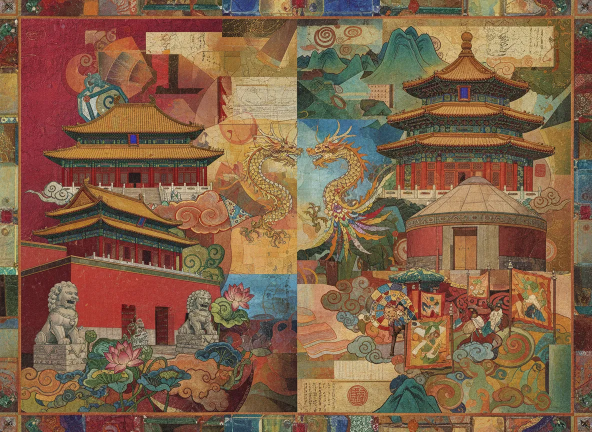Запретный город в Пекине и Мукденский дворец в Шэньяне — объекты ЮНЕСКО, демонстрирующие императорскую китайскую архитектуру.