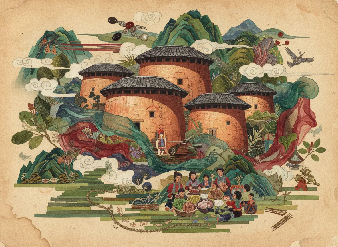 Clustered earth buildings nestled on forested ridges — quieter tulou experience with local Hakka cuisine and walks.
