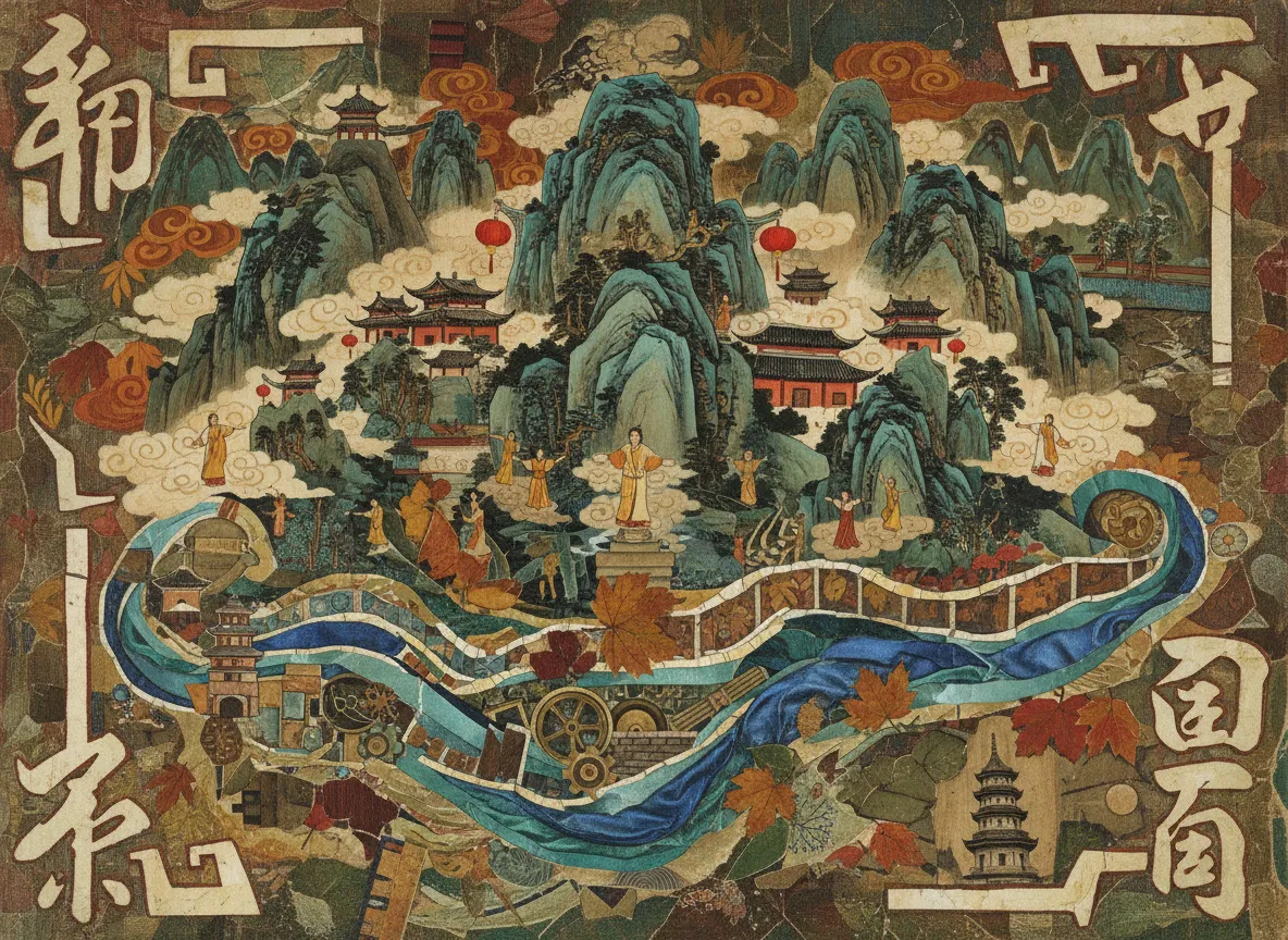 Священная гора даосизма с густыми лесами и древней оросительной системой Дуцзянъянь, объект ЮНЕСКО, демонстрирующий 2000-летнюю гидротехнику.